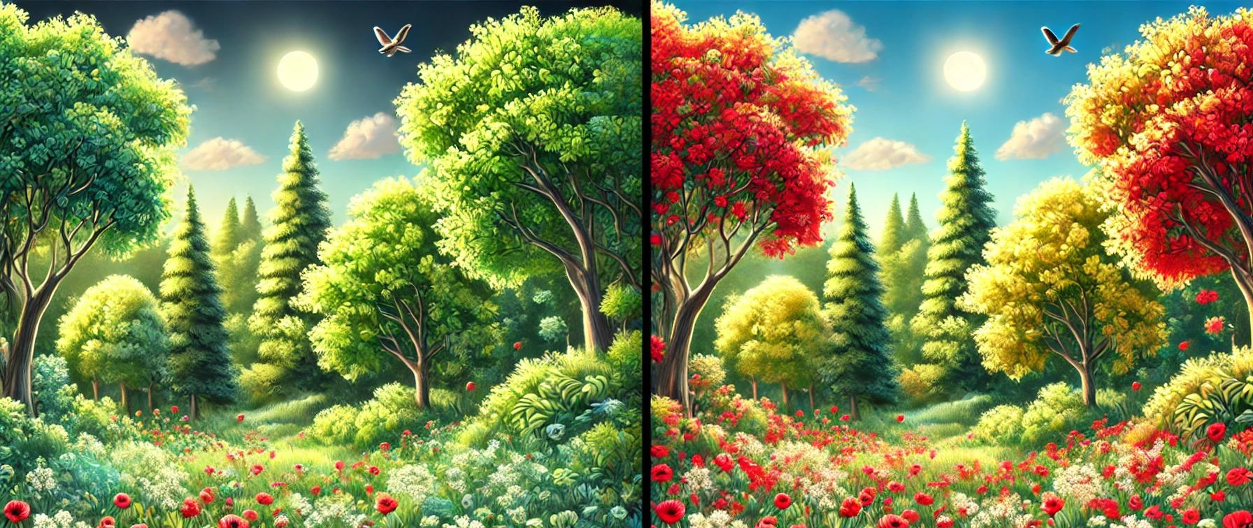 빨간색 ,주황색, 분홍색, 갈색을 구분을 하기 힘들고 뿌옇게 보이게 됩니다. 뚜렷하게 보이는 색으로 파란색, 노란색, 녹색구분할수있는 색깔로 파랑과 노랑은 또렸하게 보이게 됩니다.파란색은 심리적 안정감을 주는 색상이기도 합니다.