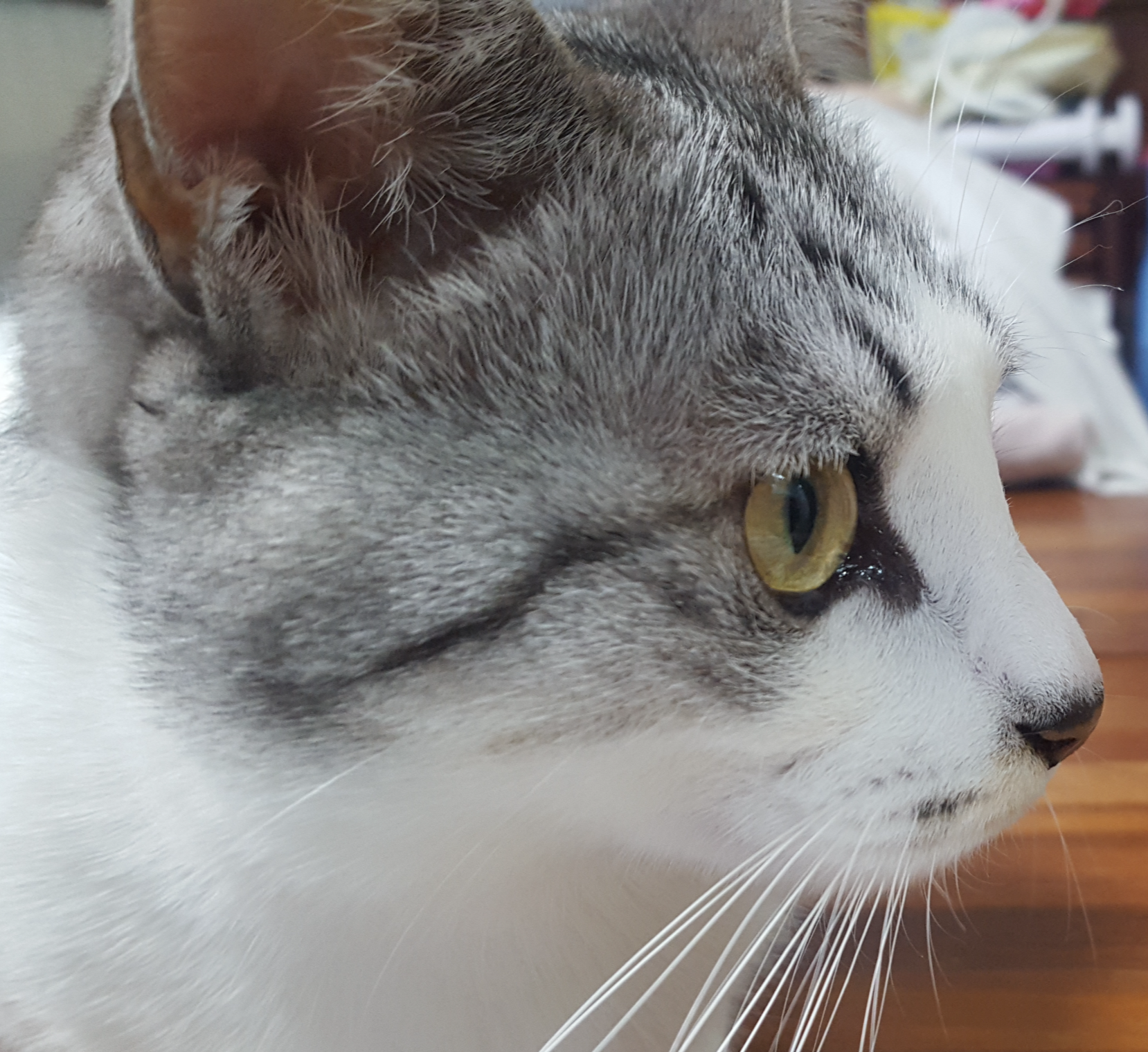 고양이의 시력은 사람의 시력으로치면 0.04~0.3정도로 고도근시에 속한 시력이 아주 나쁜 편에 속하는 데요.이건 환한낮에 움직이지 않는 물체를 구분하는 어두운 곳에서 보는 야간시력, 빠른게 움직이는 것을 보는 동체시력은 엄청나게 뛰어납니다.