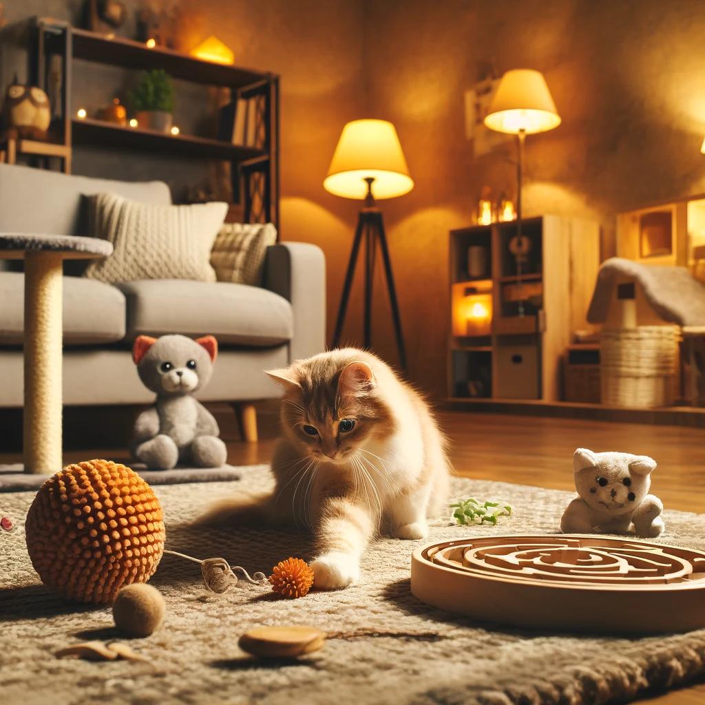 건드리면 움직이는 장난감과 고양이가 근처에 오면 움직임이 있는 장난감 다양하게 움직이고 소리를 내는 장난감 등이 있으니 고양이의 취향에 맞게 놓아주시면 좋습니다. 이 장난감은 여러개 구비해두셨다가 질리지 않게 번갈아 사용해 주시면 좋습니다.